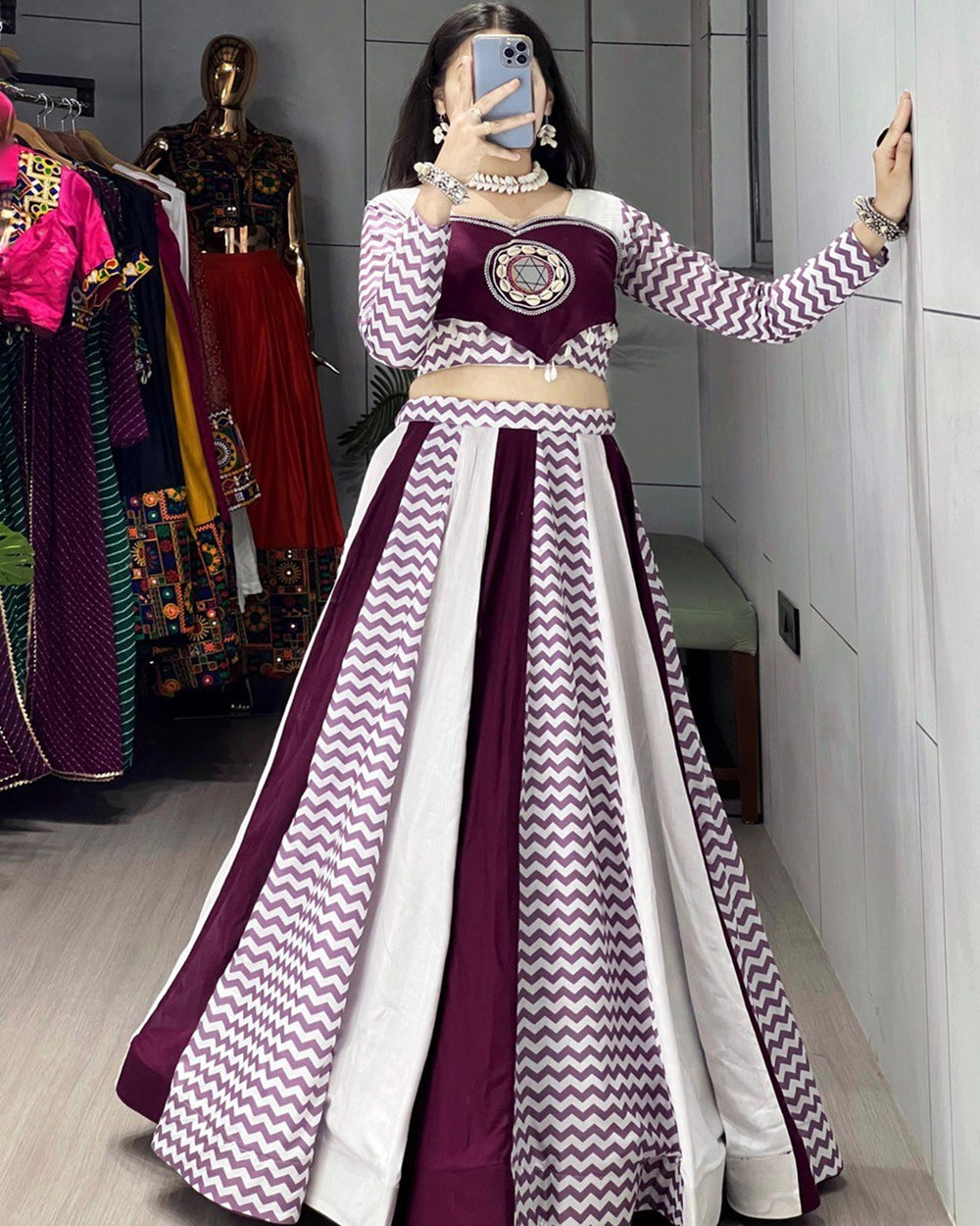 Pure Rayon Cotton Lehenga Choli in White Wine Shade – Navratri Special